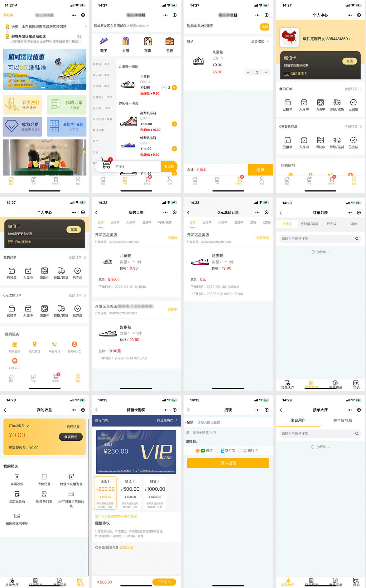 1.用戶通過服務(wù)商碼下單,將貨送到服務(wù)商門店—服務(wù)商在接單大廳點【接單】—跳轉(zhuǎn)到 該訂單的詳情頁:確認(rèn)價格、拍照上傳照片——服務(wù)商點擊入庫——門店去服務(wù)商那里統(tǒng)一取貨進行清洗——清洗完成后門店點擊【清洗完成】,并將貨統(tǒng)一送到服務(wù)商門店——用戶訂單狀態(tài)為【待收貨】 ——用戶上門取貨,點擊【確認(rèn)收貨】——訂單完成。