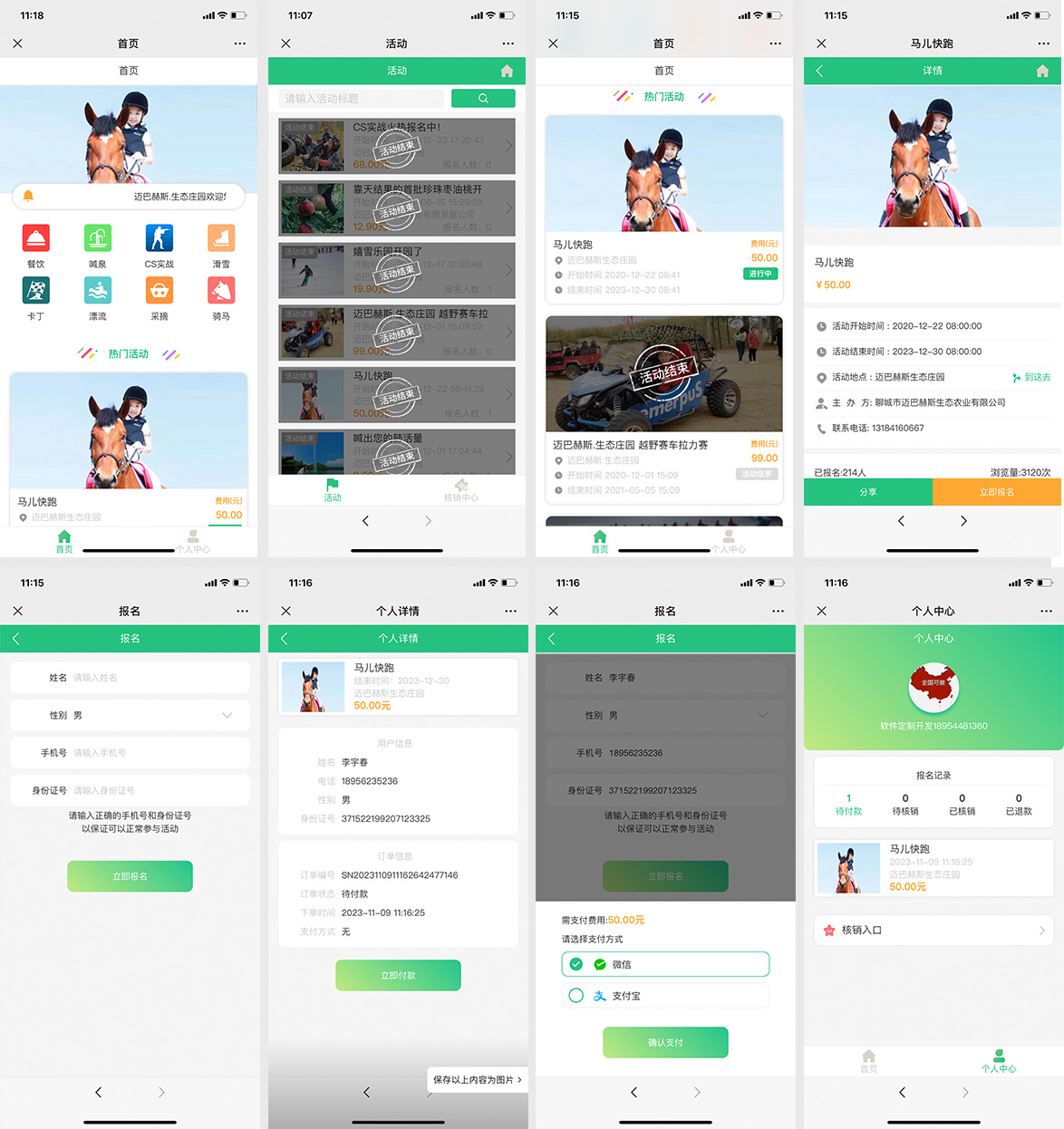 本平臺(tái)為聊城旅游度假區(qū)生態(tài)莊園設(shè)計(jì)開(kāi)發(fā),平臺(tái)涵蓋:餐飲、CS實(shí)戰(zhàn)、采摘、喊泉、滑雪、卡丁、漂流、采摘、騎馬等一系列的活動(dòng),用戶(hù)可在預(yù)約報(bào)名,參加活動(dòng)時(shí)可出示核銷(xiāo)碼去現(xiàn)場(chǎng)找工作人員核銷(xiāo)入場(chǎng)體驗(yàn)。